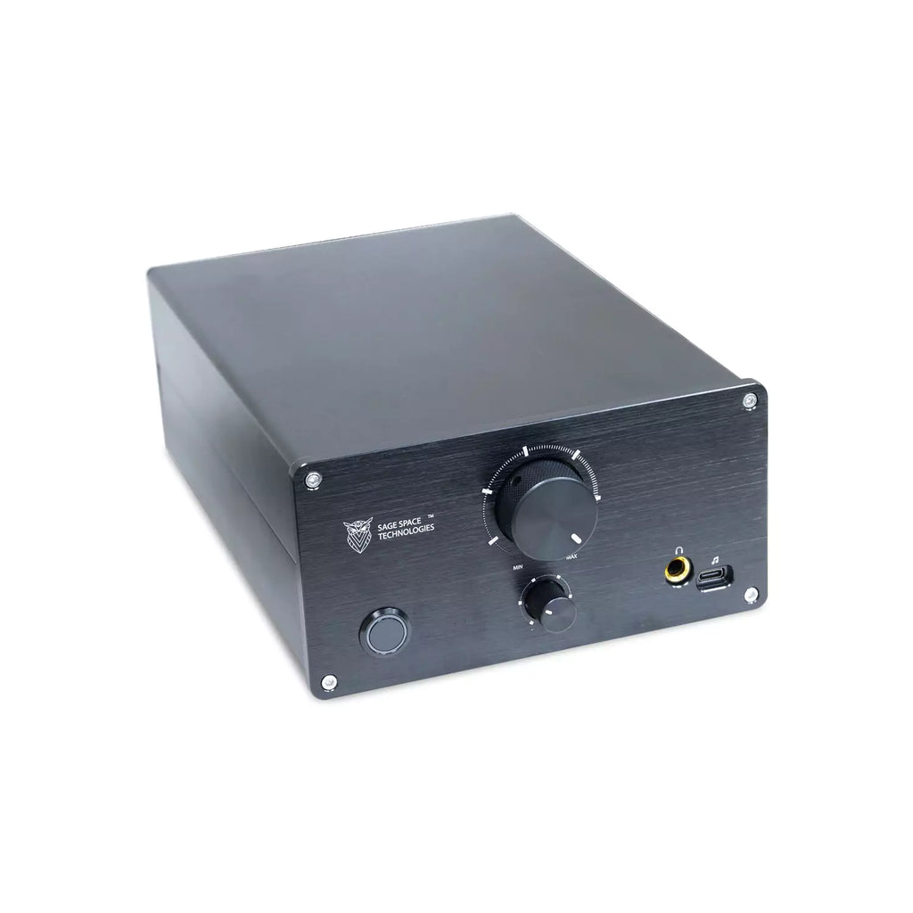 Custom-designed amplifier by Sage Space Technologies with dual output and controls