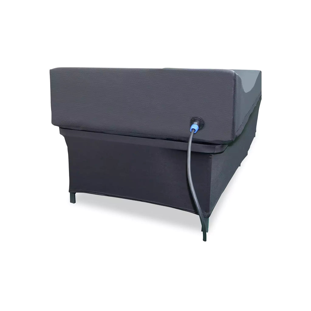 Water-resistant, medical-grade silicone mattress on a folding iron lounge frame