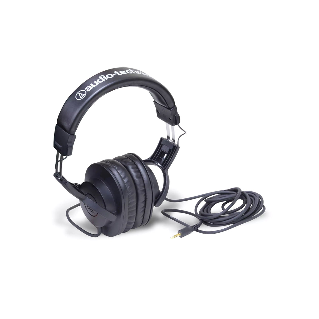 Audio delivered through Audio Technica professional monitor headphones with enhanced low-frequency performances
